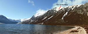 The blunt ridge between Garbh Choire Mór and Garbh Coire Dhaidh offers an easy way out of the corrie, if the headland isn't sporting a decent sized cornice. Depending upon snow cover in the corrie, you may need skirt the base of steep Northeast facing ground below the ridge to get onto it.