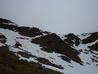 The Main Rake is the obvious diagonal ramp line at the back of the corrie, bisecting two sections of cliff.  Timing a descent when the cornices are amenable, and the rake itself is complete, can be tricky.  It has a tendency to thin fairly readily, while still sporting a sizeable mass of snow at the top.  There is a small chute at the Southern end of the snowfield (far skiers right), but the cornices are often huge here.