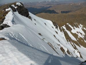 It's also worth pointing out that you can be fooled into thinking that there is continuous snow all the way to the loch, when looking down the summit gullies.  There can be snow filled runnels on the slopes immediately above the loch, but the steep band of craggy ground that is hidden from view will more than likely not be snow covered.